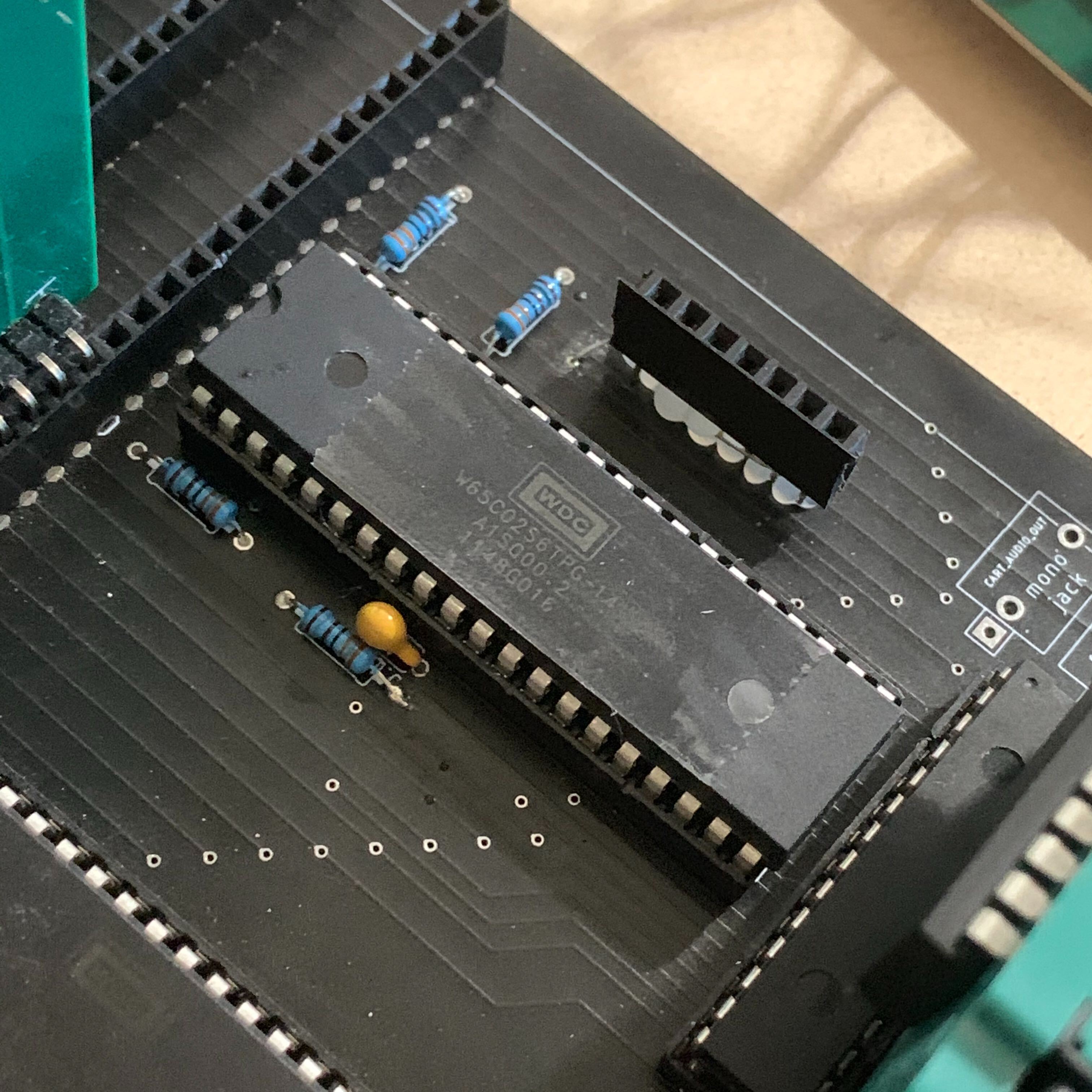 The GameTank's motherboard is home to the 6502 CPU, the 6522 Versatile Interface Adapter, some general-purpose Random Access Memory, the cartridge port, and a smattering of glue logic that defines the memory map as well as shapes the timing of certain control signals. The motherboard, in a sense, bookends the project by featuring the earliest design decision while being the last piece implemented. One of the first choices I'd made for the GameTank would be the use of the 6502 as the CPU. Then I bought one on eBay, put it in a drawer, and promptly forgot about it as I went off to play with composite video.
